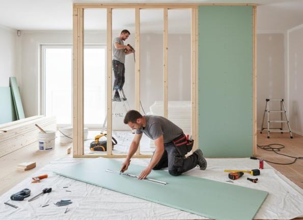 Confiez-nous vos travaux de second œuvre : nous vous accompagnons de l’aménagement à la finition, avec un travail soigné et des solutions adaptées à vos besoins.